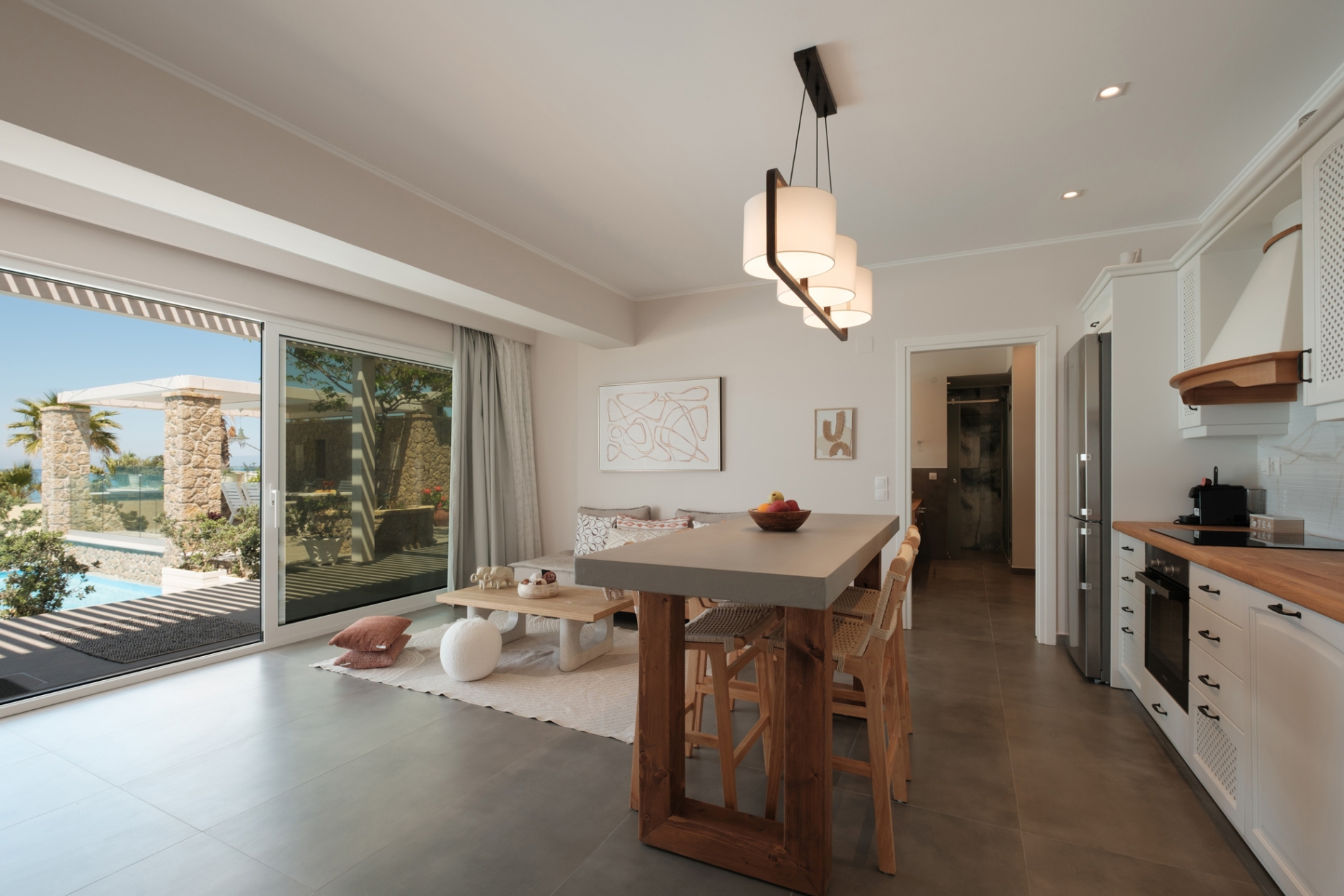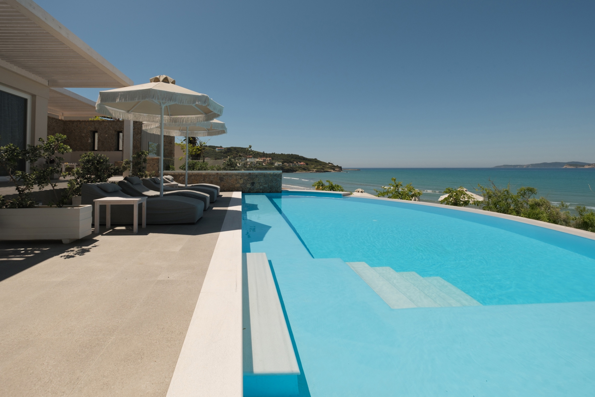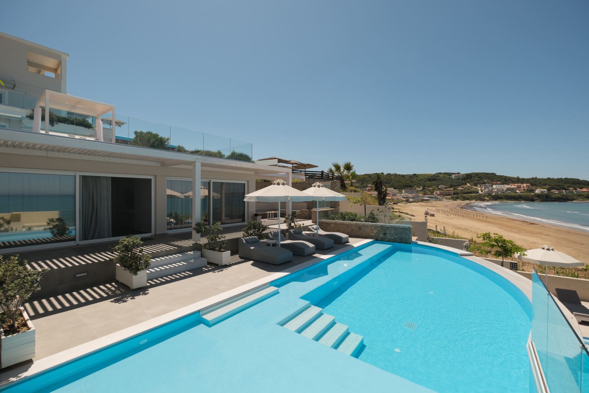 An exclusive beachfront villa with an infinity private pool and expansive outdoor lounge, offering breathtaking views of the sea and sunset. It includes two bedrooms, two elegant bathrooms, a stylish living area, and a fully equipped kitchen. Designed for guests who value space, privacy, and refined island living.
