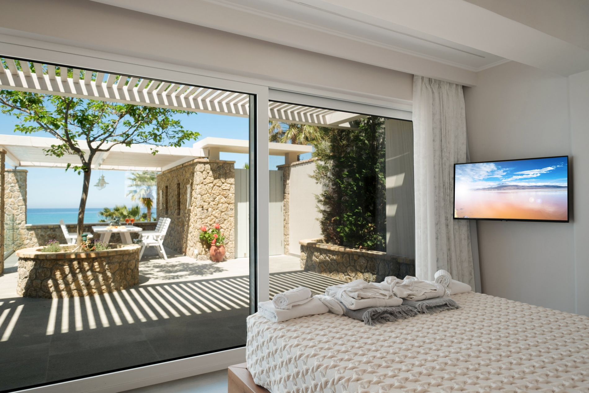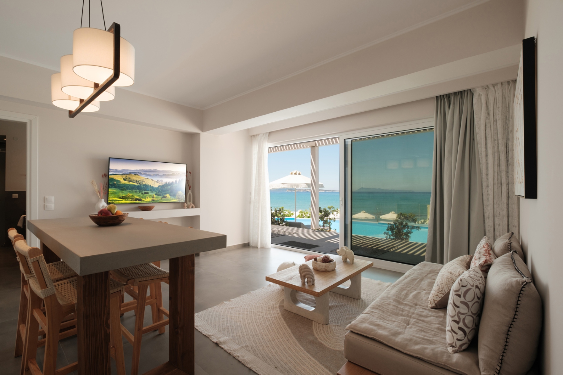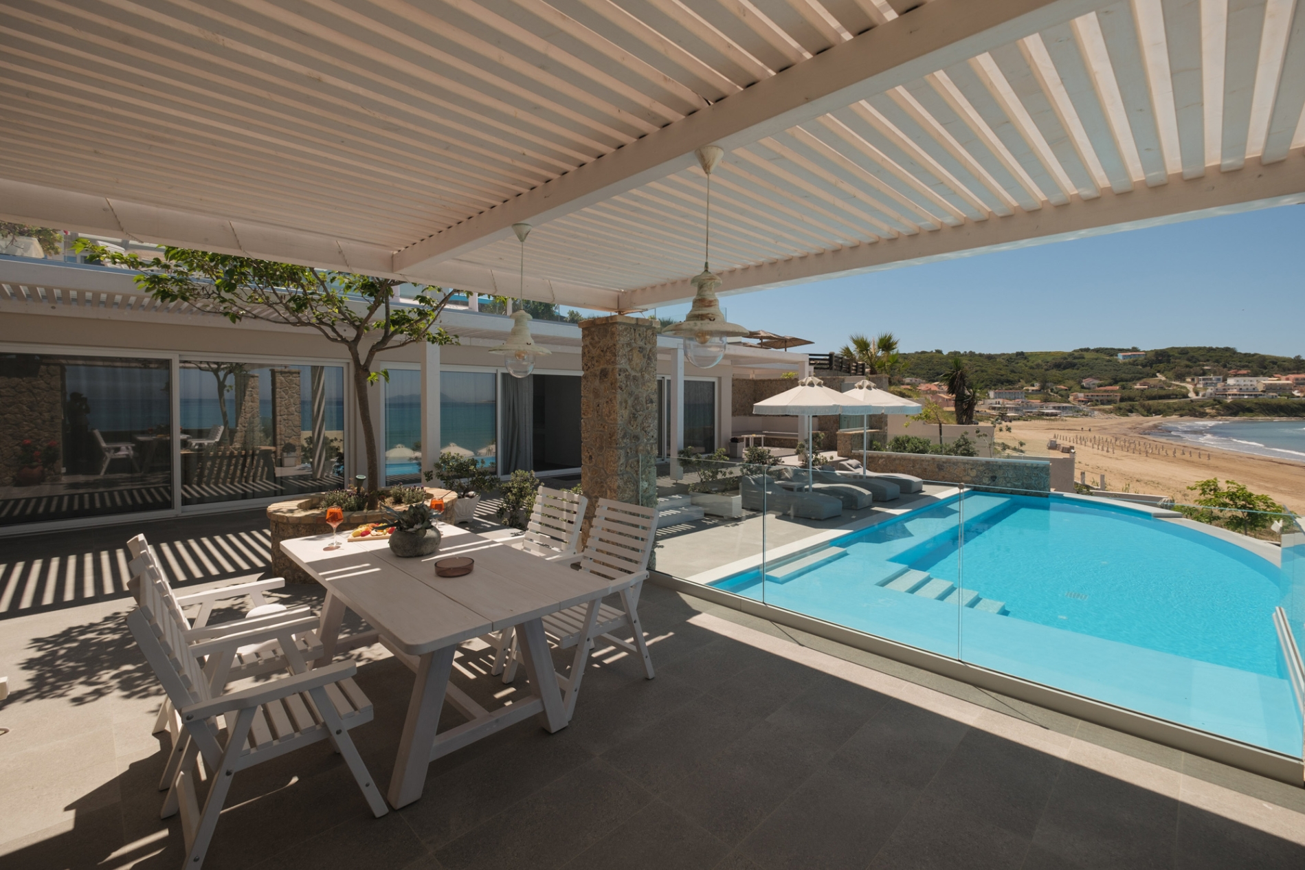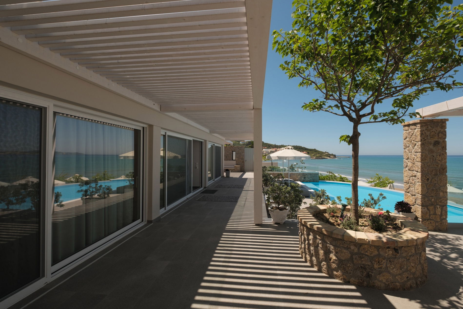 An exclusive beachfront villa with an infinity private pool and expansive outdoor lounge, offering breathtaking views of the sea and sunset. It includes two bedrooms, two elegant bathrooms, a stylish living area, and a fully equipped kitchen. Designed for guests who value space, privacy, and refined island living.